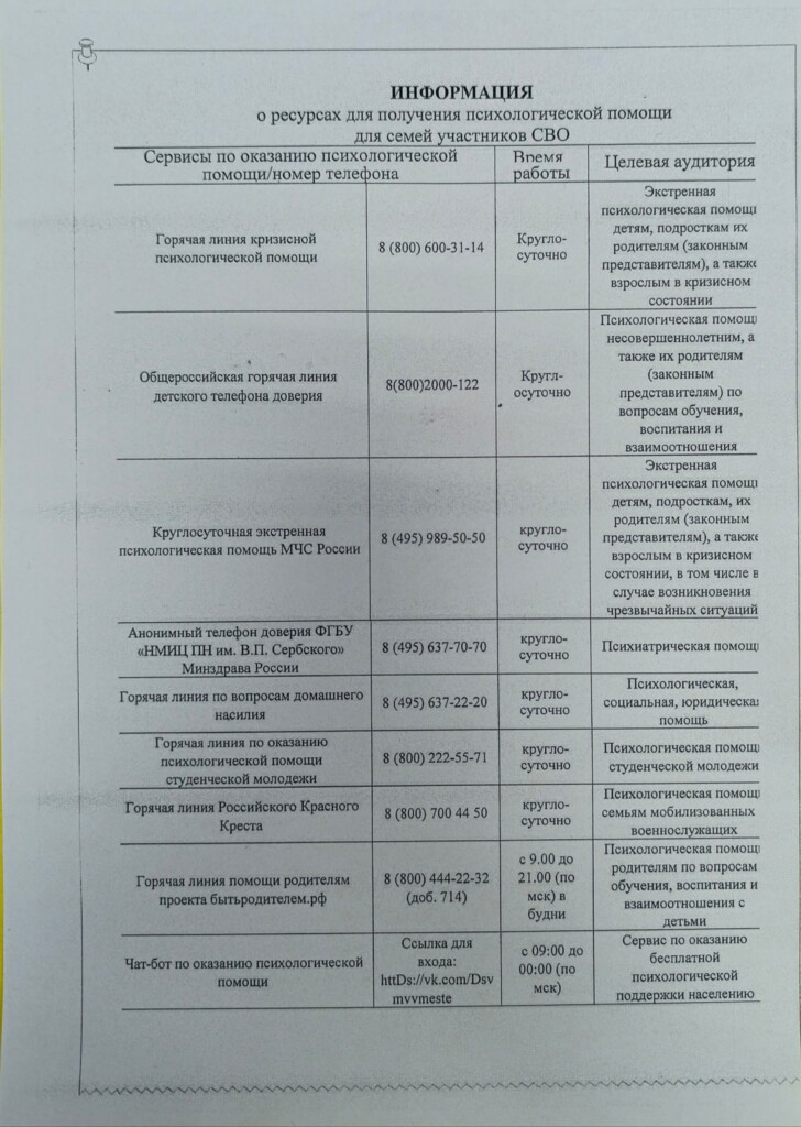 Единый федеральный телеграмм-чат психологической поддержки для членов семей воинов Отечества и участников СВО